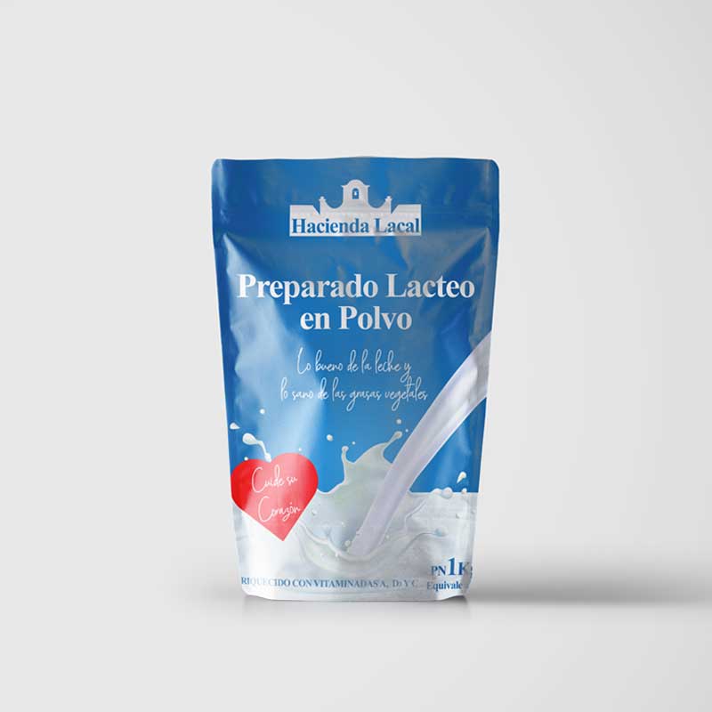 Preparado lácteo en polvo en sachet de aluminio de 1kg HACIENDA LACAL, Ingredientes: Es un alimento lácteo preparado con leche desnatada, grasa vegetal y rico en vitaminas A, D, C, Fósforo, Zinc y Magnesio. Ideal para una alimentación saludable.